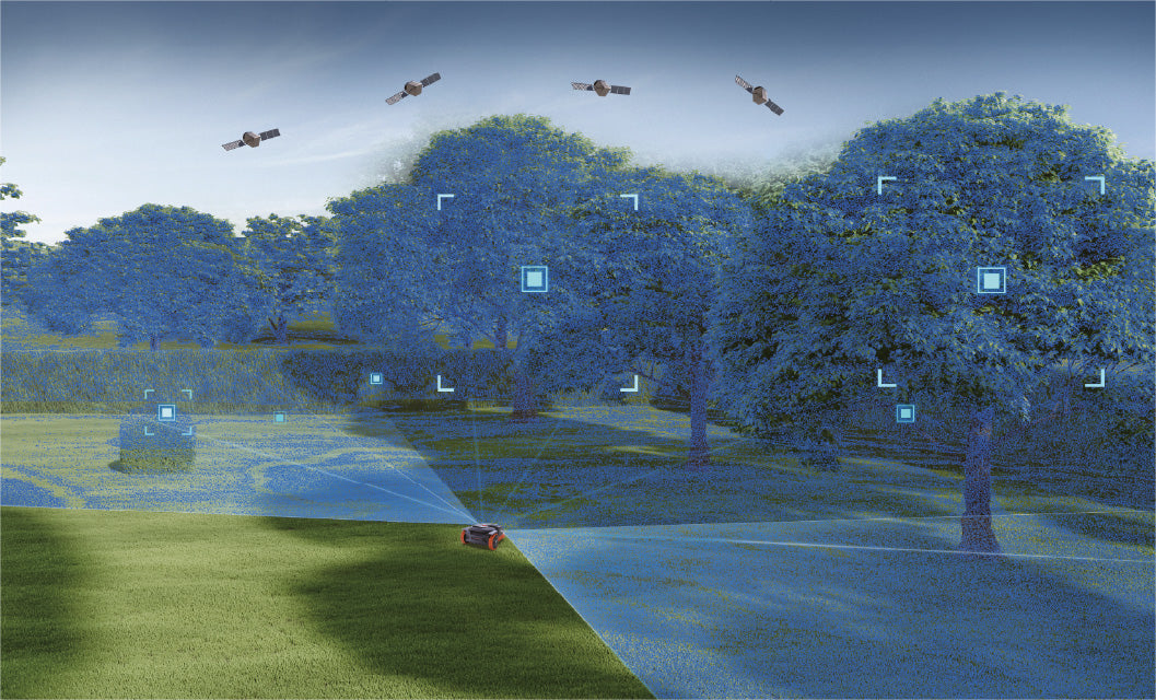 Dieses Hybrid-System kommt beispielsweise in Navimow Mährobotern zum Einsatz, die durch die EFLS-Technologie (Exact Fusion Locating System) stabil navigieren. Sie erfassen während des Mähens visuelle Orientierungspunkte, die bei schwachem Satellitensignal für eine genaue Positionsbestimmung sorgen.